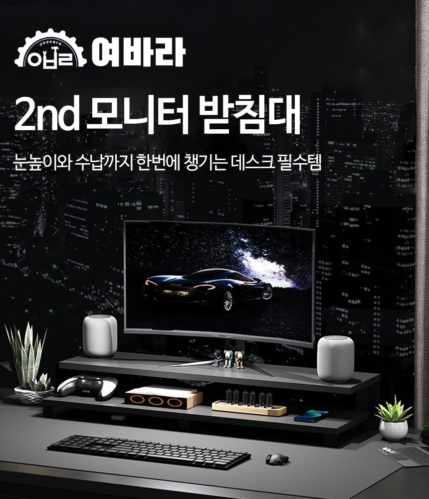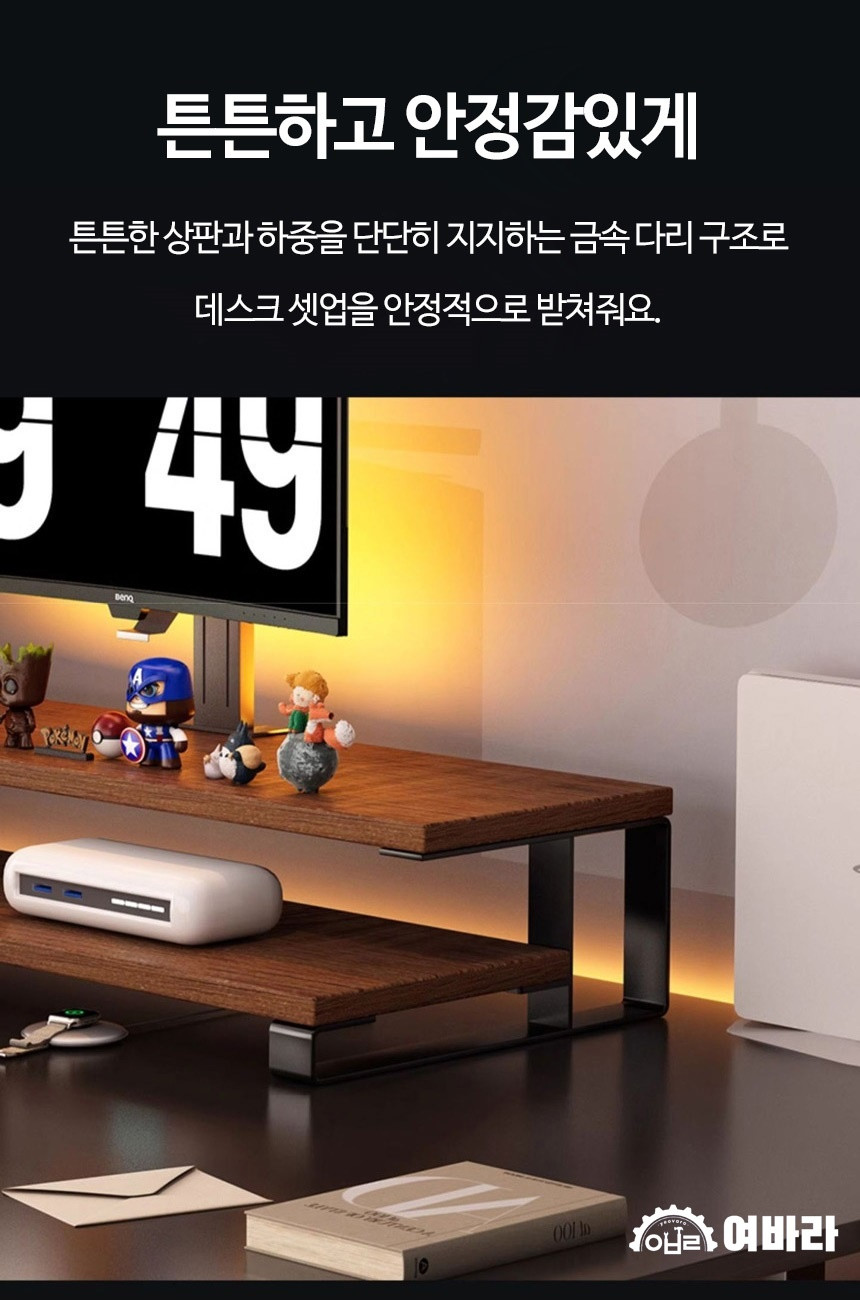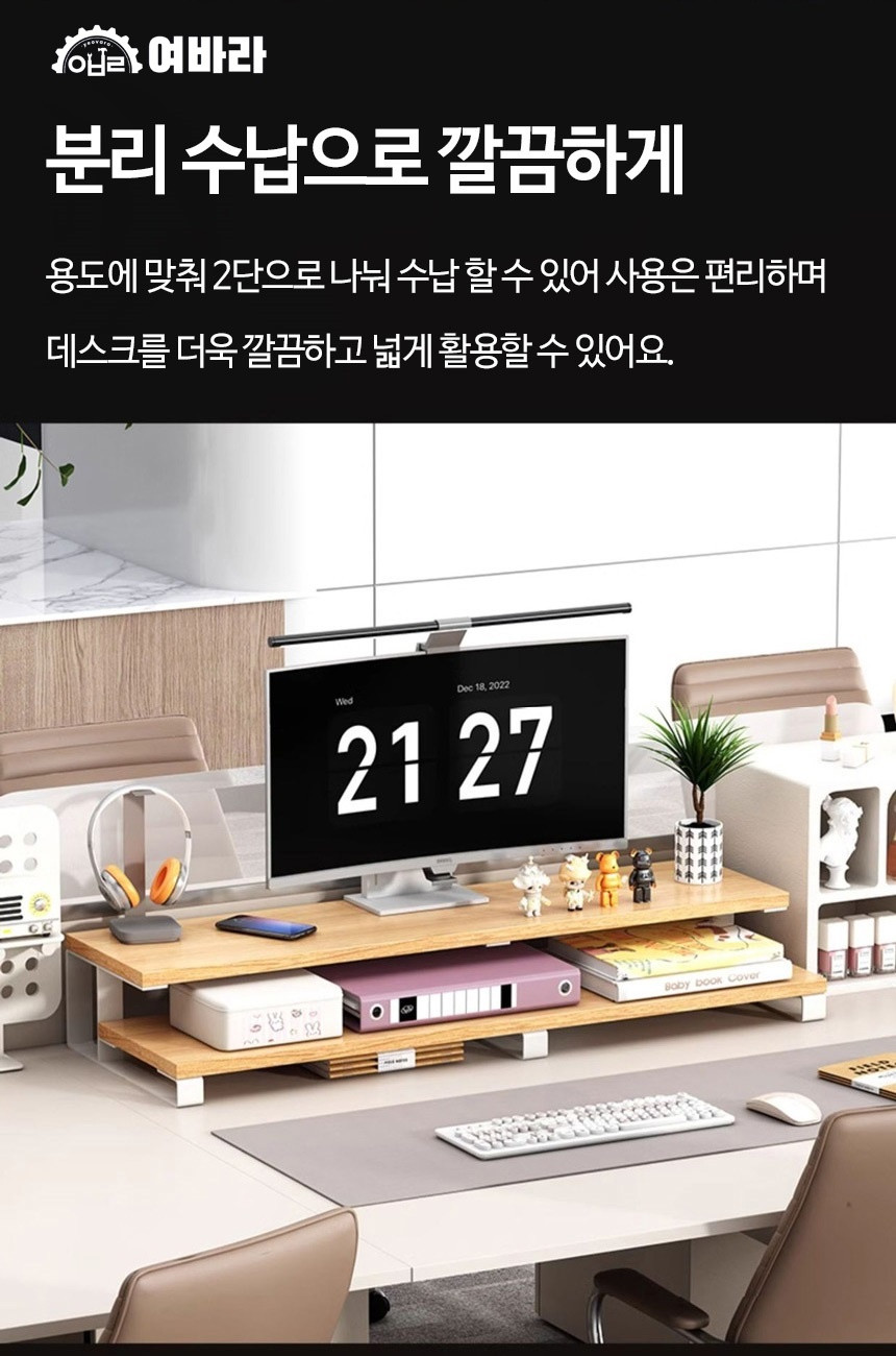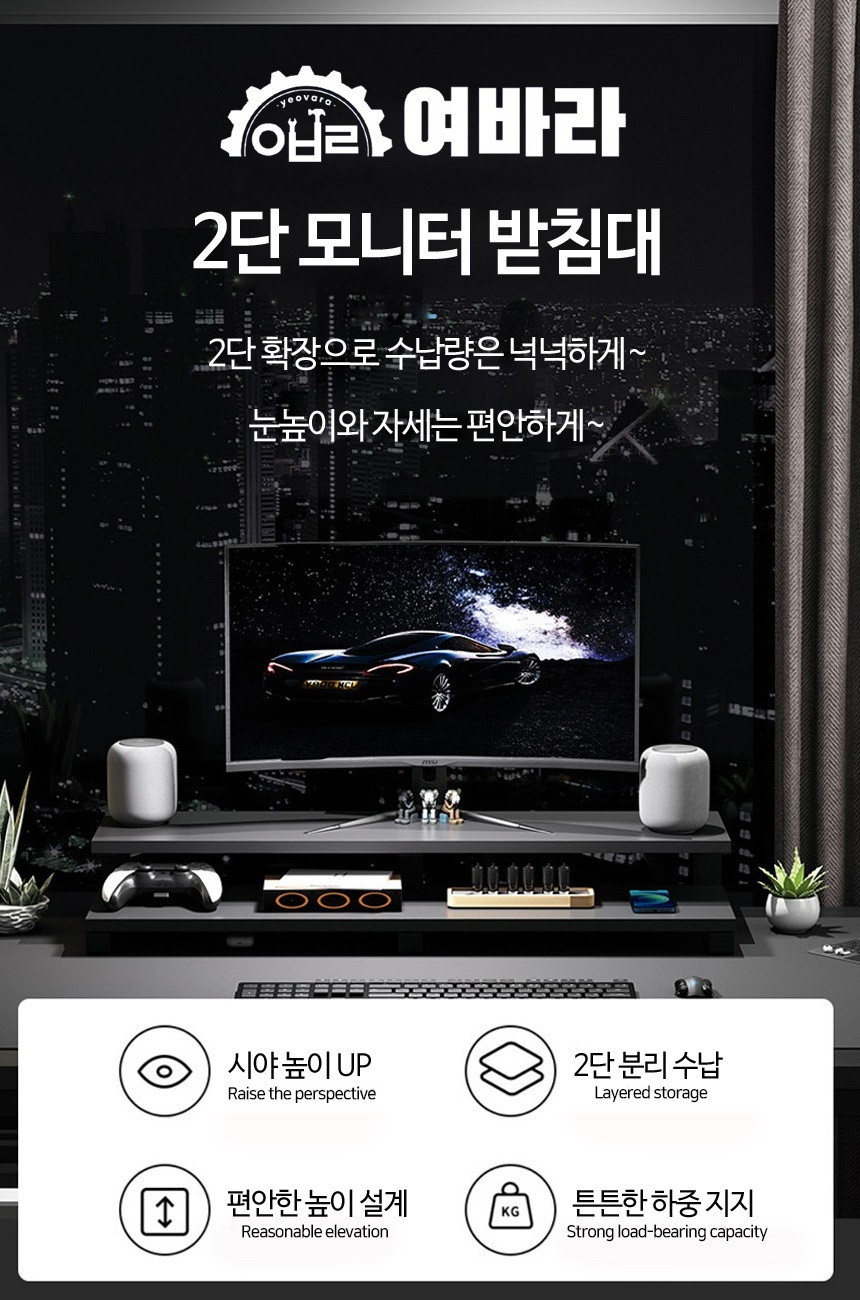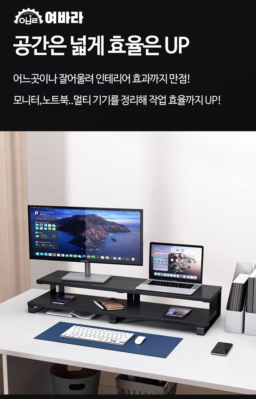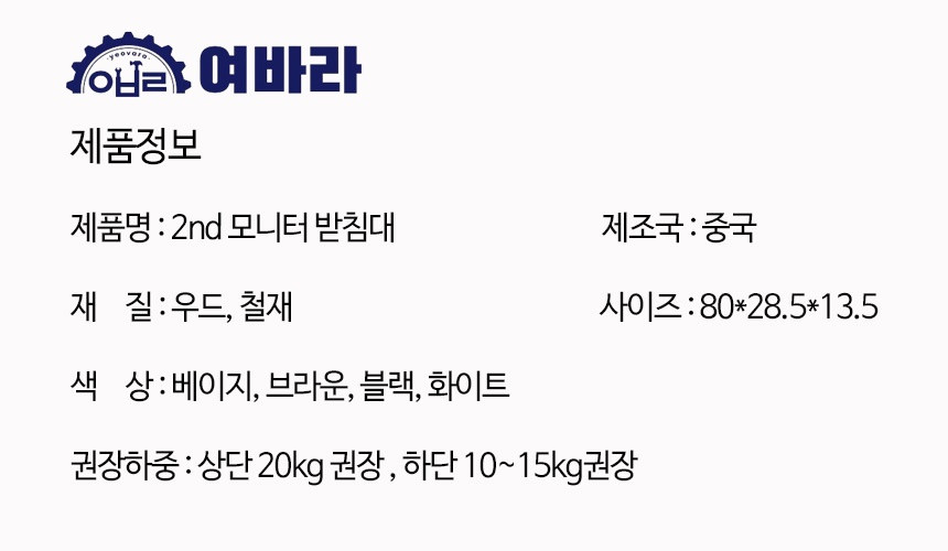 2단 모니터 받침대 L형 여바라 모니터선반 800mm, 화이트