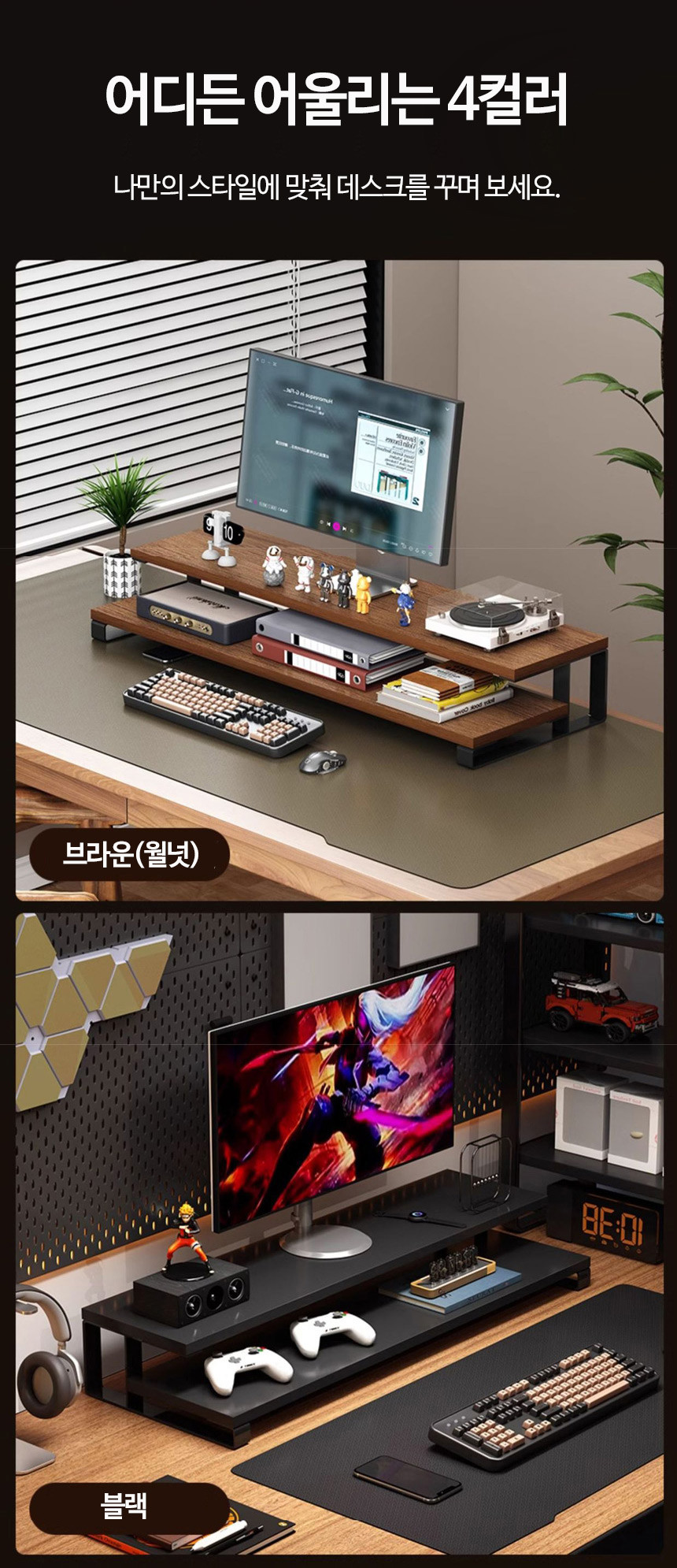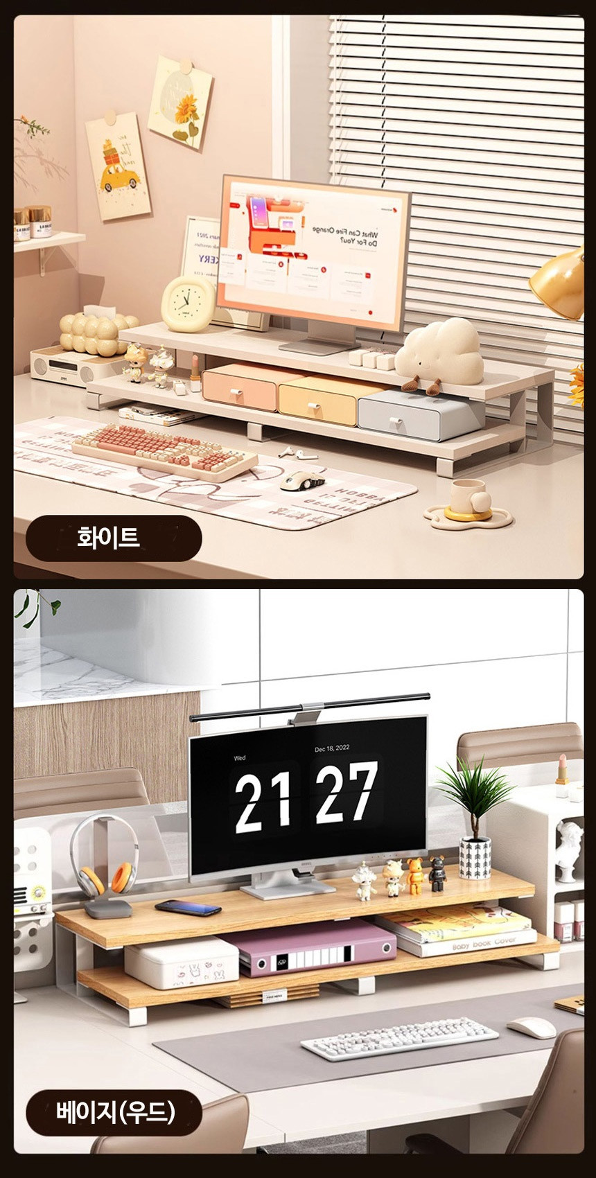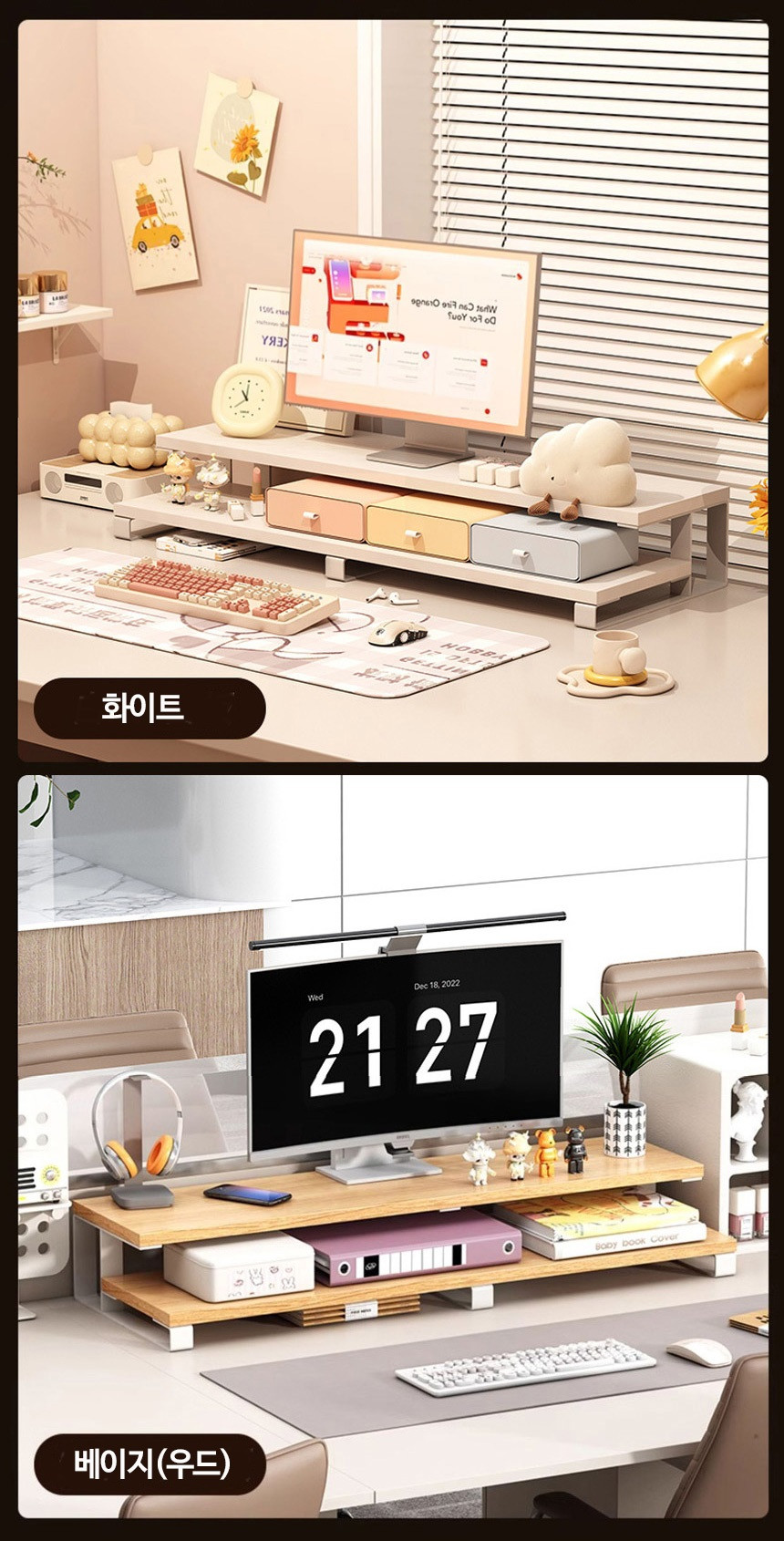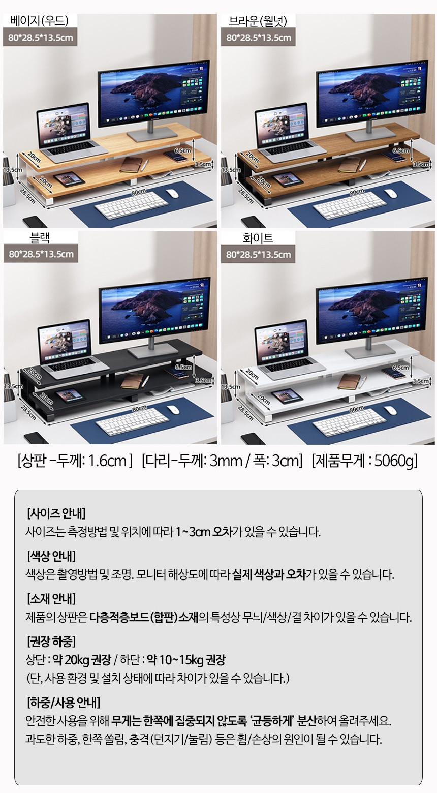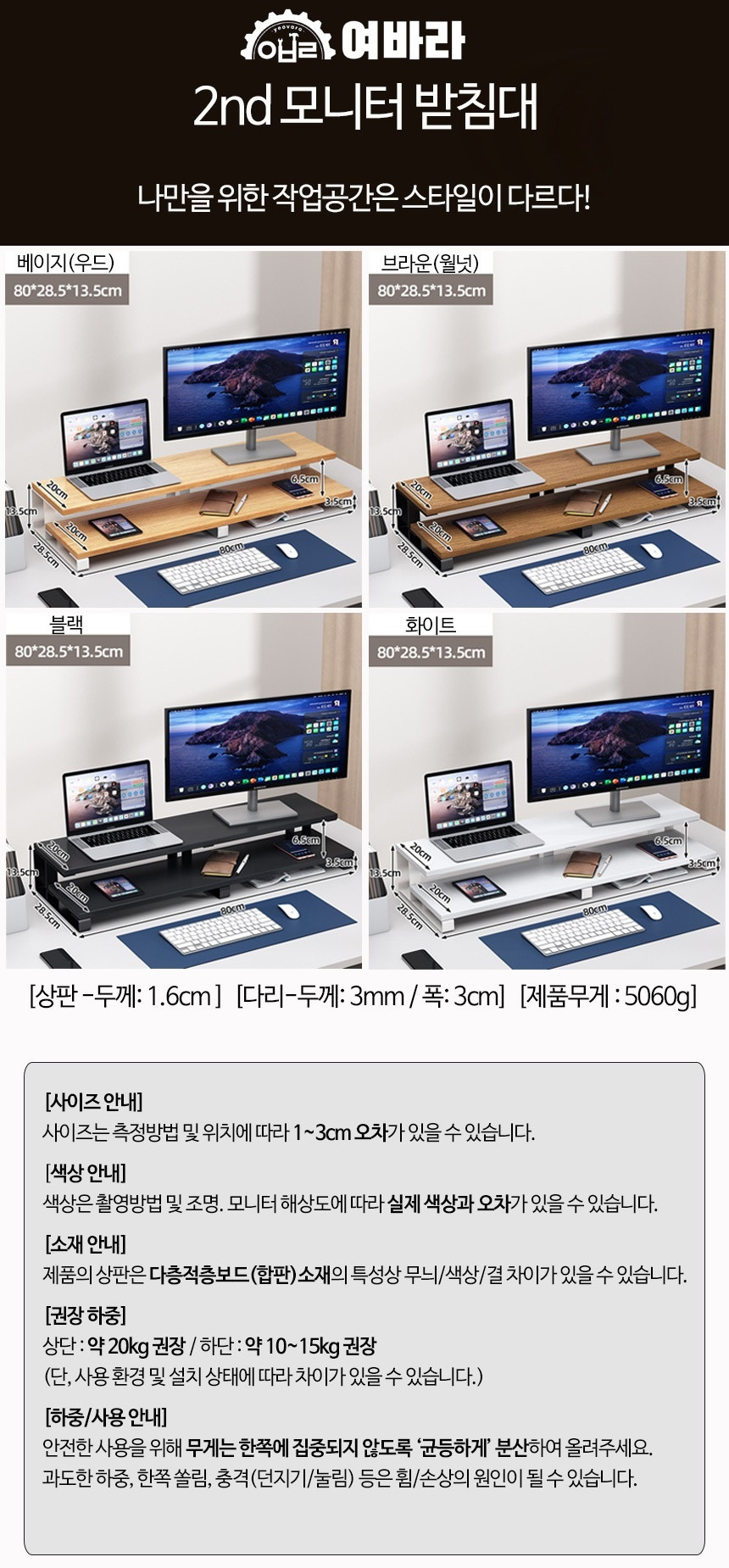 2단 모니터 받침대 L형 여바라 모니터선반 800mm, 화이트