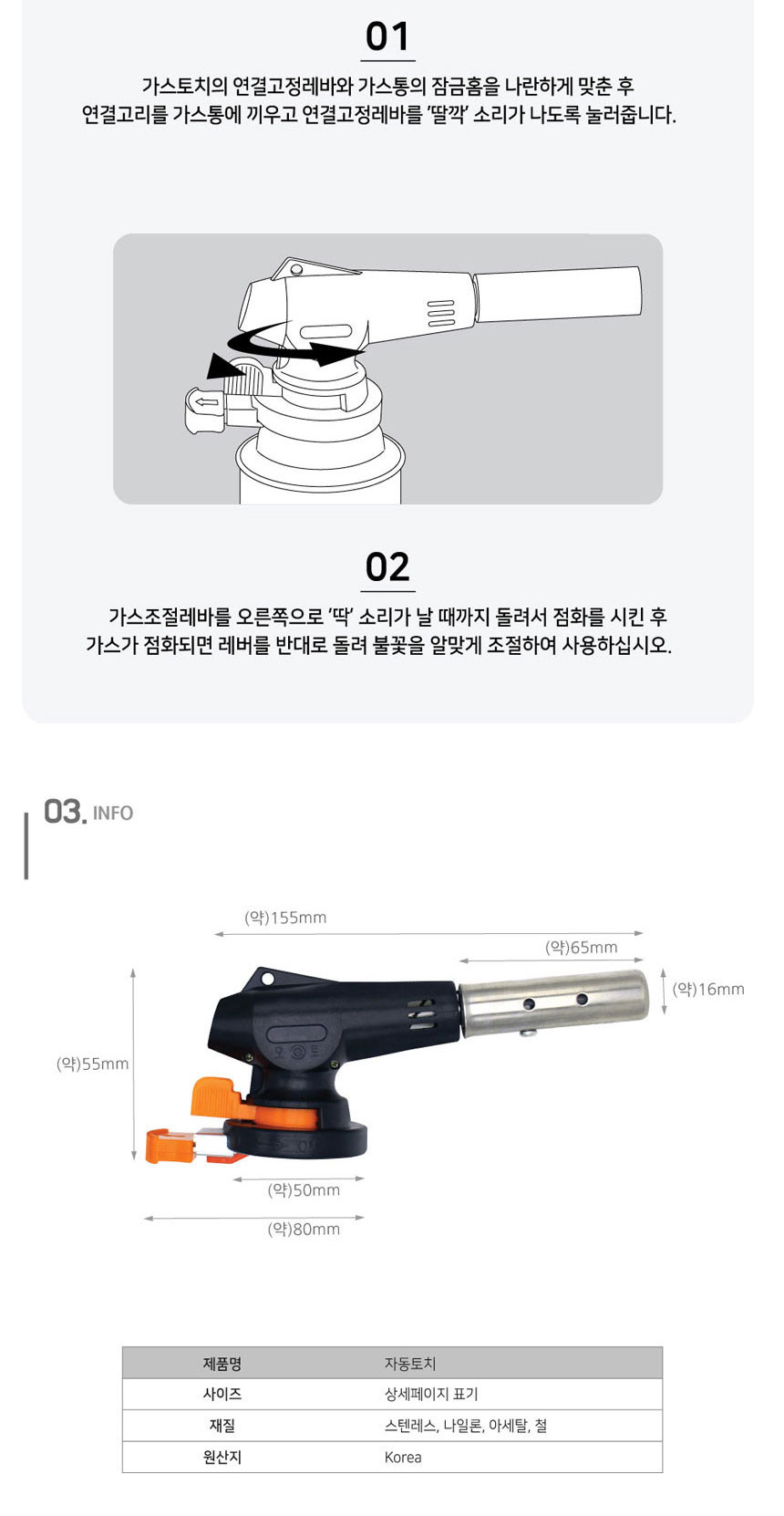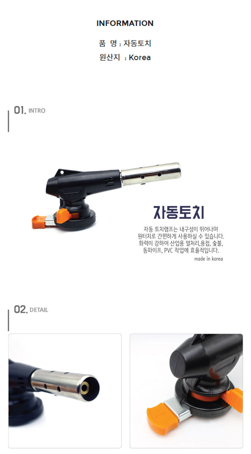 원터치 바베큐 부탄가스 취사용품 숯불 토치 캠핑 가정용 자동토치 요리 여바라